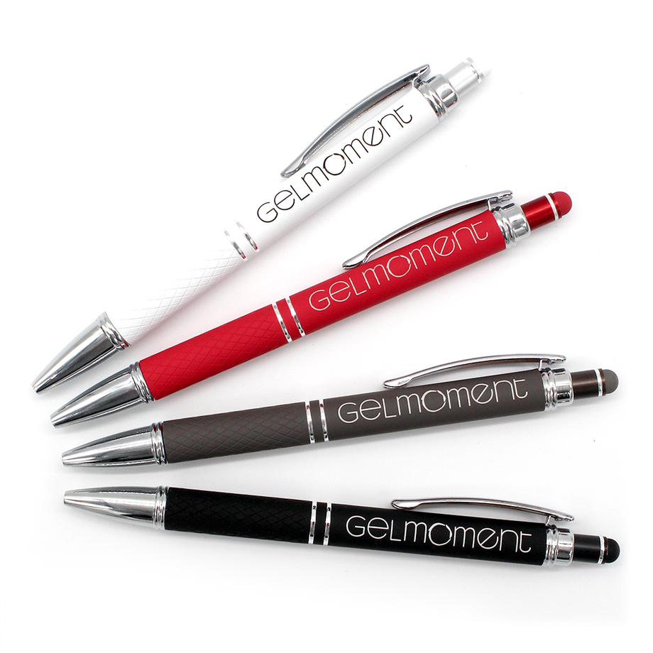 Enjoy our new sleek pens complete with a rubber grip and stylus. Available in four classic colours, these pens are designed never to disappoint so that you can keep one in every drawer, pocket, and purse. They are comfortable to hold and glide smoothly over the page. Share them to spread the joy.